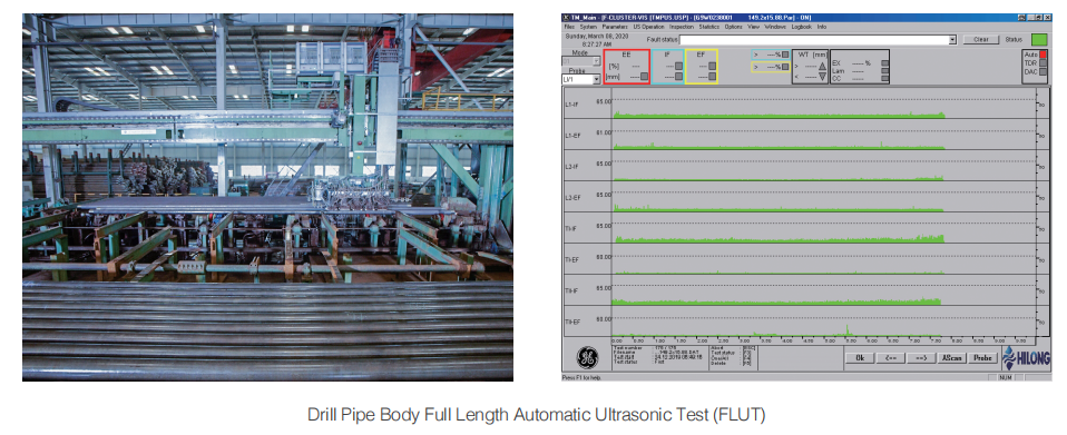 ·Pipe body 100% FLUT (longitudinal, transverse, oblique ultrasonic testing + ultrasonic thickness measurement) + 100% pipe end MPI (or UT), drill pipe tool joint 100%UT+100%MPI, welding zone 100%UT+100% MPI.