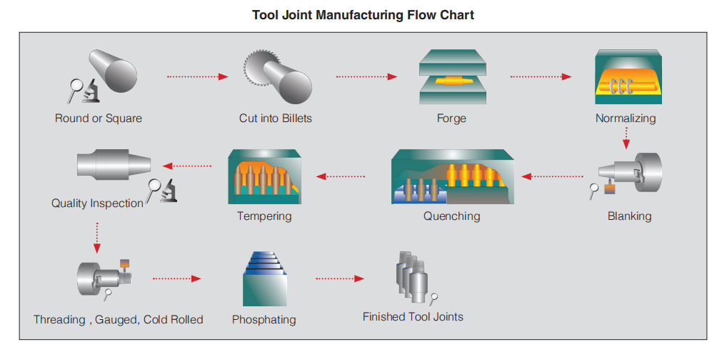 ·Integration: drill pipe tool joint manufacturing, upsetting, heat treatment and friction welding, hardbanding wire production and application, internal coating material production and application.
