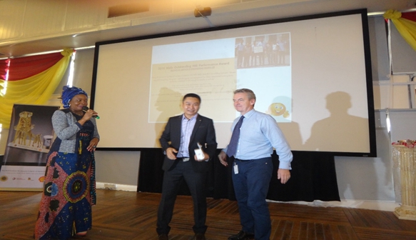 海隆油服尼日利亞公司總經理鄭國旗從SPDC WELLS手中接過獎牌