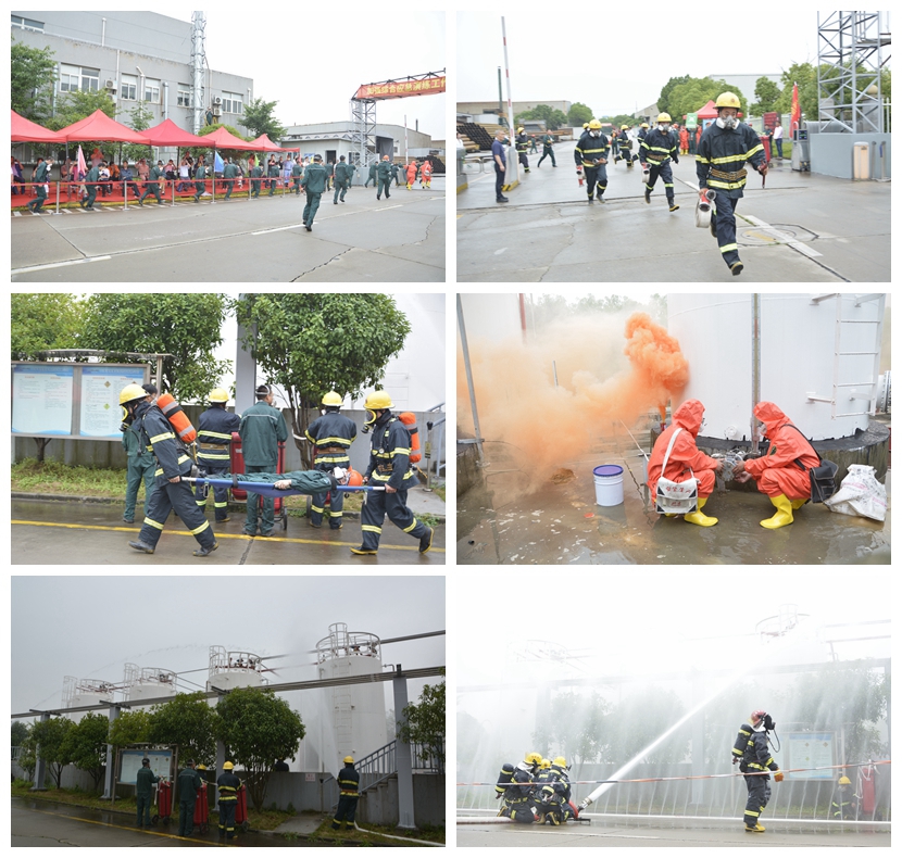 此次演練預設場景為海隆廠區甲類液體儲罐管道發生泄露,由于搶修不慎造成火災,火勢逐漸擴大、失去控制,同時有人員受傷,應急預案隨之展開。疏散警戒組、物資保障組、通信聯絡組、設備保障組、環境偵檢組依次到場;消防和醫療人員展開滅火、被困人員解救和傷員救治工作,同步組織實施堵漏。由于現場火勢逐漸增強,消防撲救組請求政府救援力量處置,隨后寶山區110、119加大力量趕赴現場救援,共同將火勢控制下來。整個演練時間約15分鐘,演練流程順暢,環節緊湊,各小組表現優異,圓滿完成了各項演練任務。
