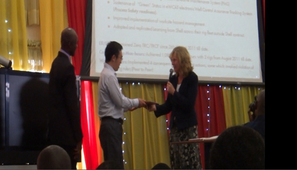 海隆油服尼日利亞項(xiàng)目組建伊始,就嚴(yán)格執(zhí)行總部和甲方制定的各項(xiàng)HSE政策和規(guī)章制度、并結(jié)合自身實(shí)際制定系列HSSE管理措施,在人員安全、環(huán)境保護(hù)等方面都取得了良好的成績。尼日利亞項(xiàng)目現(xiàn)有HL-2、HL-19兩部2000HP鉆機(jī),自開鉆以來,LTI為零,全年無任何人員傷亡事件。鑒于以上HSSE工作的優(yōu)秀表現(xiàn),海隆油服尼日利亞項(xiàng)目公司受邀參加此次HSSE論壇會,項(xiàng)目總經(jīng)理陳聚慶在會上做了HSSE工作介紹,并接受了頒發(fā)的獎牌。海隆也是在SPDC五十多個承包商中,少數(shù)幾家在會上發(fā)言并獲獎牌的承包商之一。