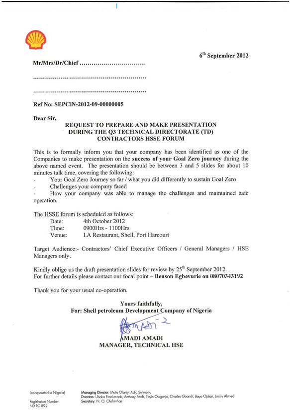 2012年10月4日,海隆石油技術(shù)服務(wù)有限公司應(yīng)邀參加了尼日利亞項(xiàng)目甲方SPDC召開的年度HSSE論壇會。參會人員有SHELL高層領(lǐng)導(dǎo)(CEO、副總裁、主管HSSE副總裁)、其子公司SPDC的高層領(lǐng)導(dǎo)及各承包商的總經(jīng)理、副總經(jīng)理和HSSE經(jīng)理等人員。會上海隆喜獲SPDC嘉獎并被授予優(yōu)秀HSSE管理獎牌。