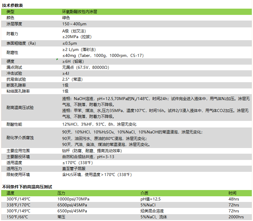 ·具有優異的防腐蝕性能,有效防止點蝕,可應用于各種泥漿體系; ·具有優異的耐磨性能,優異的抗機械性能,重復使用也能保持涂層完好; ·能有效提高流動性,降低泵壓及減輕磨損。