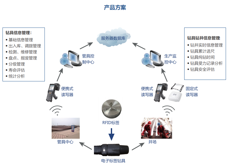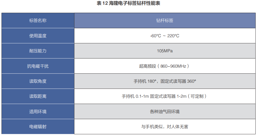 海隆電子標(biāo)簽鉆具及物聯(lián)網(wǎng)管理系統(tǒng)——通過(guò)每根鉆具產(chǎn)品上安裝無(wú)線射頻識(shí)別(RFID)標(biāo)簽,使其擁有獨(dú)一無(wú)二的“電子身份證”,結(jié)合智能讀寫(xiě)設(shè)備和物聯(lián)網(wǎng)管理系統(tǒng),高效、精確地實(shí)現(xiàn)鉆具生產(chǎn)、出入庫(kù)、調(diào)撥、使用、維修、檢測(cè)、報(bào)廢等全生命周期的管理。