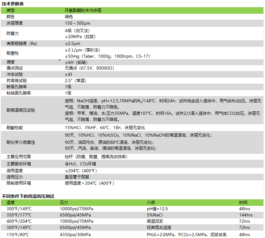 ·具有優(yōu)異的防腐蝕性能,有效防止點蝕,可應用于各種泥漿體系; ·具有優(yōu)異的抗耐磨性能,重復使用也能保持涂層完好; ·能有效提高流動性,降低泵壓及減輕磨損。