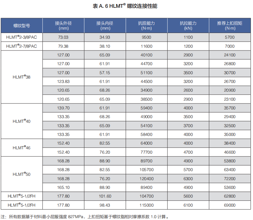 (b)HLMT® 系列包括 HLMT®2-3/8PAC、HLMT®2-7/8PAC、HLMT®38、HLMT®40、HLMT®46、HLMT®50、和 HLMT®5-1/2FH 等規格。